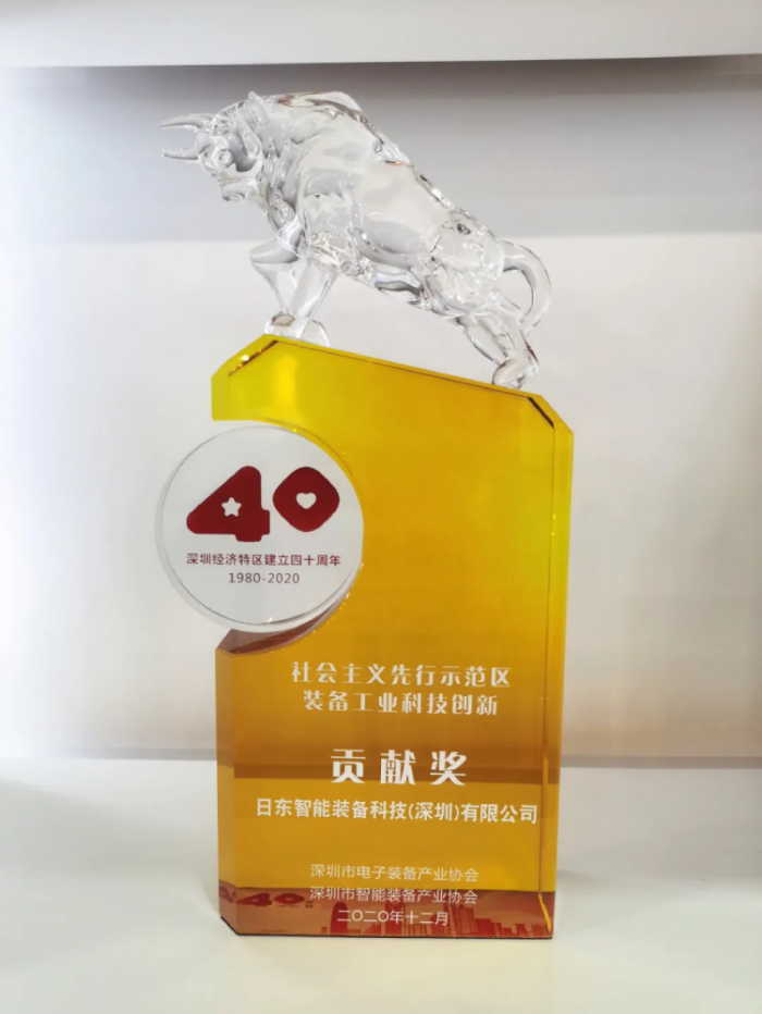日東科技應邀出席了頒獎盛典,并榮獲了“裝備工業科技創新貢獻獎"和深圳市電子裝備產業協會“高級合作機構”的榮譽!