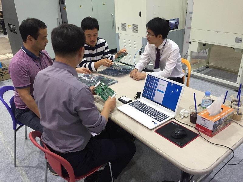 展會期間,前來參觀的觀展商絡繹不絕,對我們參展的機器——選擇性波峰焊SUNFLOW3產生了濃厚的興趣,在我們資深工程師的詳細解說下,觀展商對我們的機器有了更深的了解。不少客戶咨詢了我們的機器,并帶著產品到展會現場測試,紛紛對我們產品的技術水平表示高度的贊許和認可。